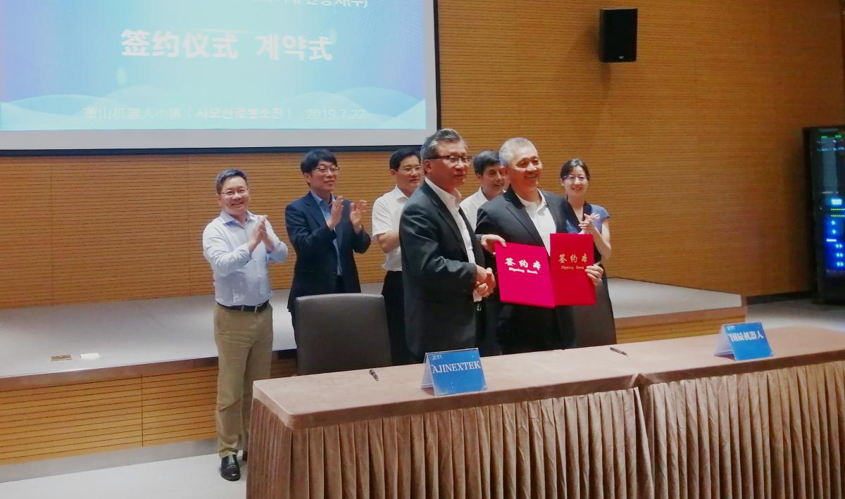 【國辰訊】2019年7月22日,杭州國辰機器人科技有限公司與韓國(株)亞進EXTEK合作成立合資公司簽約儀式在蕭山機器人小鎮(zhèn)隆重舉行。蕭山經濟技術開發(fā)區(qū)黨工委委員、管委會副主任徐建中,開發(fā)區(qū)招商局副局長、機器人小鎮(zhèn)工作組負責人陳笑,浙江省機器人產業(yè)發(fā)展協(xié)會秘書長王國耀,韓國大慶機器人振興社會長金昌浩,杭州國辰機器人科技有限公司首席戰(zhàn)略官王國成、韓國(株)亞進EXTEK常務崔成赫等出席簽約儀式。